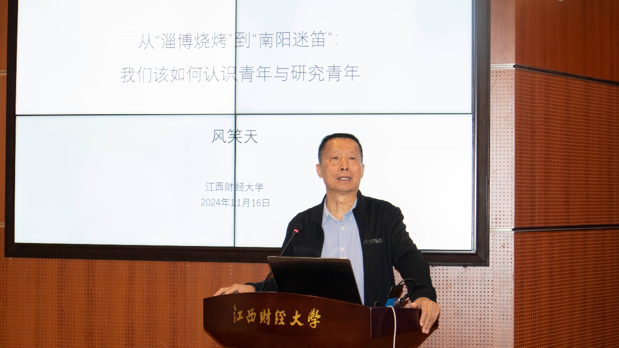 风笑天教授以“从‘淄博烧烤’到‘南阳迷笛’:我们该如何认识青年与研究青年”为题发表演讲。他认为,认识青年首先要回到青年的本质特征,青年具有质朴、单纯、善良又茫然稚嫩的特质,青年的生理规定性、心理规定性和社会规定性是理解、指引和关爱青年的前提。其次,研究青年应学会从传统的研究主题中发现当代的青年现实,要将“站在外面看”与“进到里面看”相结合,深入青年生活,区分不同时代的青年特征,并始终在社会变迁的框架中理解青年现象。