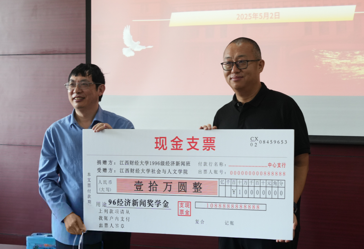 见面会上,校友们与恩师重逢,场面温馨感人。面对全国首届经济新闻班的优秀学子,学校原经济文化传播系主任熊焰教授为校友作了一副对联:“独树一帜江右突起经济新闻春雷动,欢歌九霄学子荣归雄师闯将浩荡来”,既饱含对往昔师生情谊的珍视,又寄托了对校友事业发展的殷切期许。